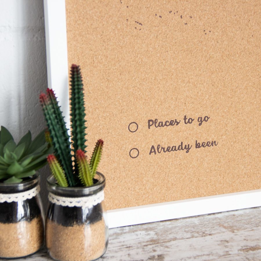 Harta din pluta incadrata intr-o rama alba, ideala pentru planificarea calatoriilor viitoare, dar si pentru amintirea locurilor pe care le-ati vizitat deja. Harta vine impreuna cu 20 de pinuri colorate, cu ajutorul carora puteti marca destinatiile.