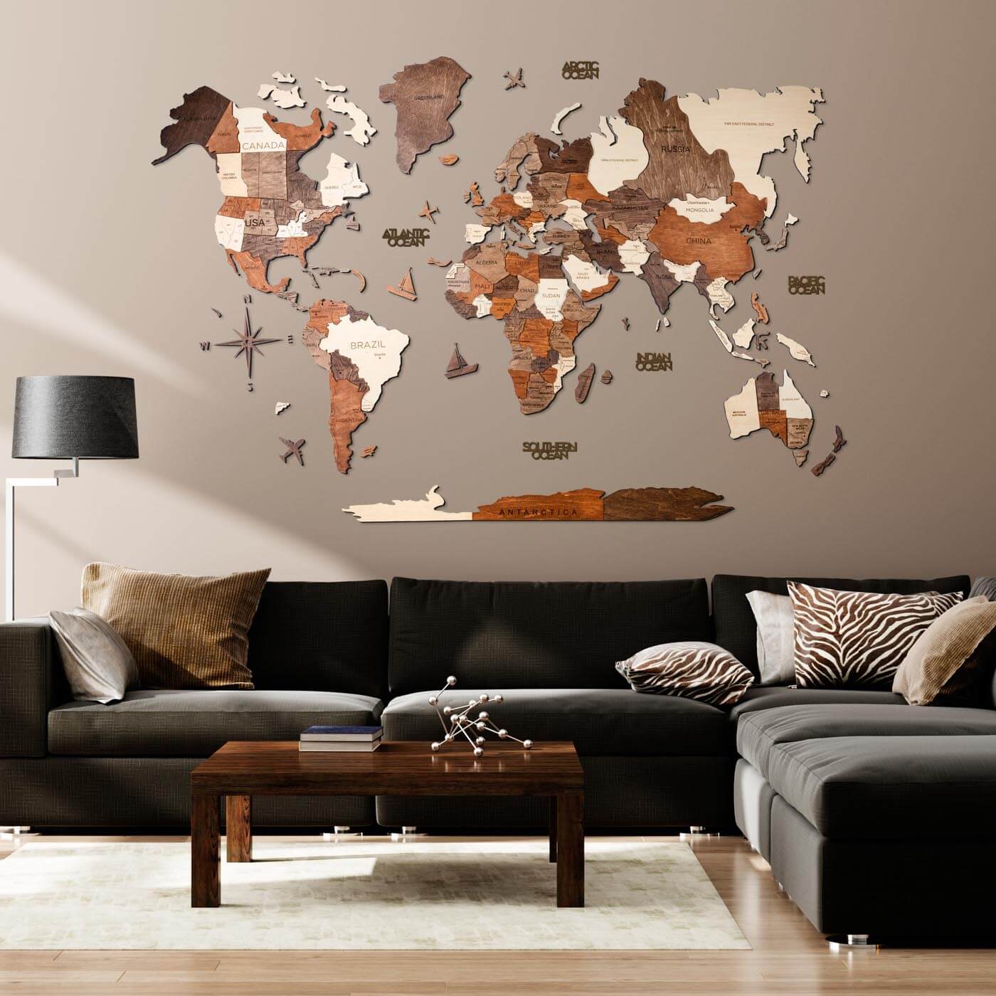 Daca simtiti ca spatiul de acasa sau de la birou nu are o piesa centrala – acesta este cel mai impresionant obiect de decor. Harta lumii din lemn 3D este realizata din placaj de mesteacan de inalta calitate cu gravuri impecabile. Este o piesă uimitoare de decor pentru perete si se incadreaza perfect in orice design interior: minimalist, semnificativ si cu adevarat inspirator!