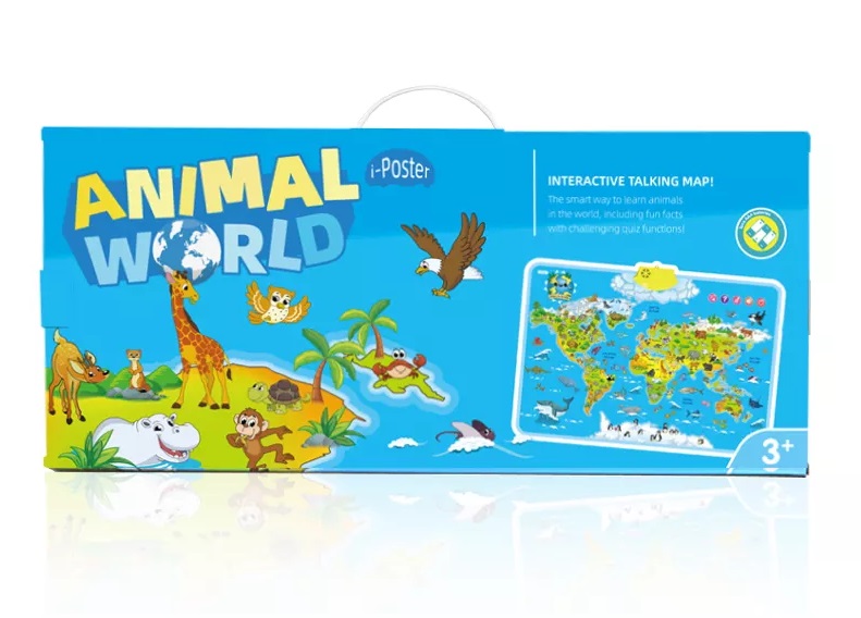 Harta Vorbitoare în Limba Engleză - Animalele Lumii este un instrument multifuncțional cu mai multe moduri de învățare cu ajutorul căreia cei mici vor descoperi 105 animale și unde trăiesc ele, 7 continente și 4 oceane.