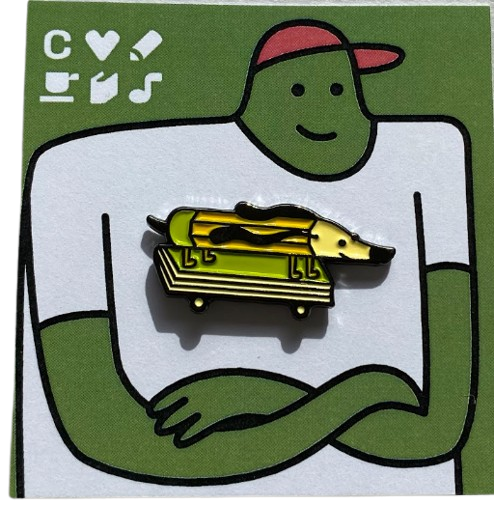 Insignă din aliaj zincat cu email colorat, cu prindere metalică tip ac.