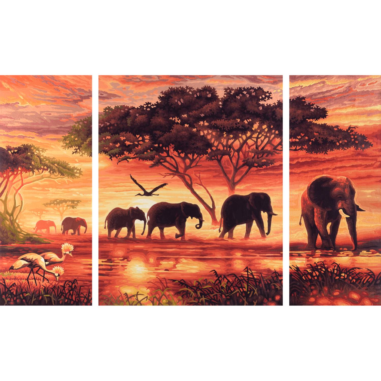 Set pictură pe numere, 50x80 cm, format din 3 tablouri. Unul central cu dimensiunea de 50x40 cm și două laterale cu dimensiunea de 50x20 cm, din carton cu textură de pânză.