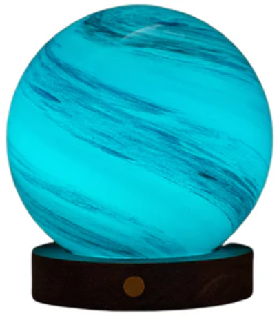 Luminile Astraglass combină măiestria frumoasă cu caracteristici inteligente pentru a crea un obiect cu adevărat fascinant pentru spațiul dvs. de locuit. Globul de sticlă suflat și pictat manual seamănă cu o planetă înghețată, cu dungi albastre argintii care se învârt pe suprafață.
