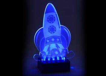 This fun LED rocket shaped night light glows blue when turned on to make little ones feel safer in the dark. The light automatically turns off after 2 hours so no need to disturb your little ones sleeping to turn off the night light. The LED bulbs make great lights as they last for 30,000 hours.