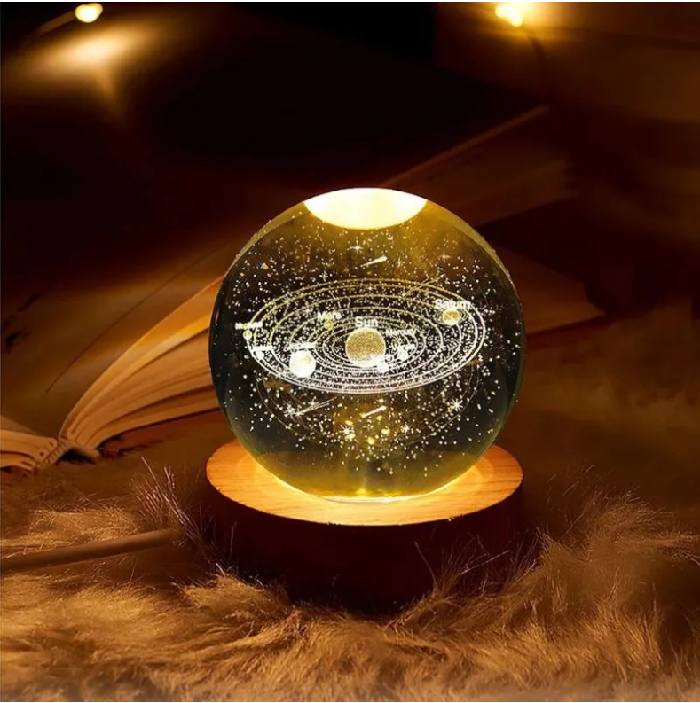 Toate domnisoarele care vor sa-si afle viitorul apeland la vrajitoare au gasit acum o modalitate mult mai economica si eficienta - Lampa Glob de cristal Planetariu, cu sistem solar, cadou captivant. Chiar daca la prima vedere pare o simpla decoratiune stralucitoare din lemn masiv si cristal, eleganta si perfecta pentru un cadou femei, nu te lasa inselat. In spatele acestui cristal cu reprezentatia sistemului solar care e prevazut cu lumina calda de 3000K se ascund puterile unor duhuri stravechi care te pot ajuta sa-ti descoperi alesul.