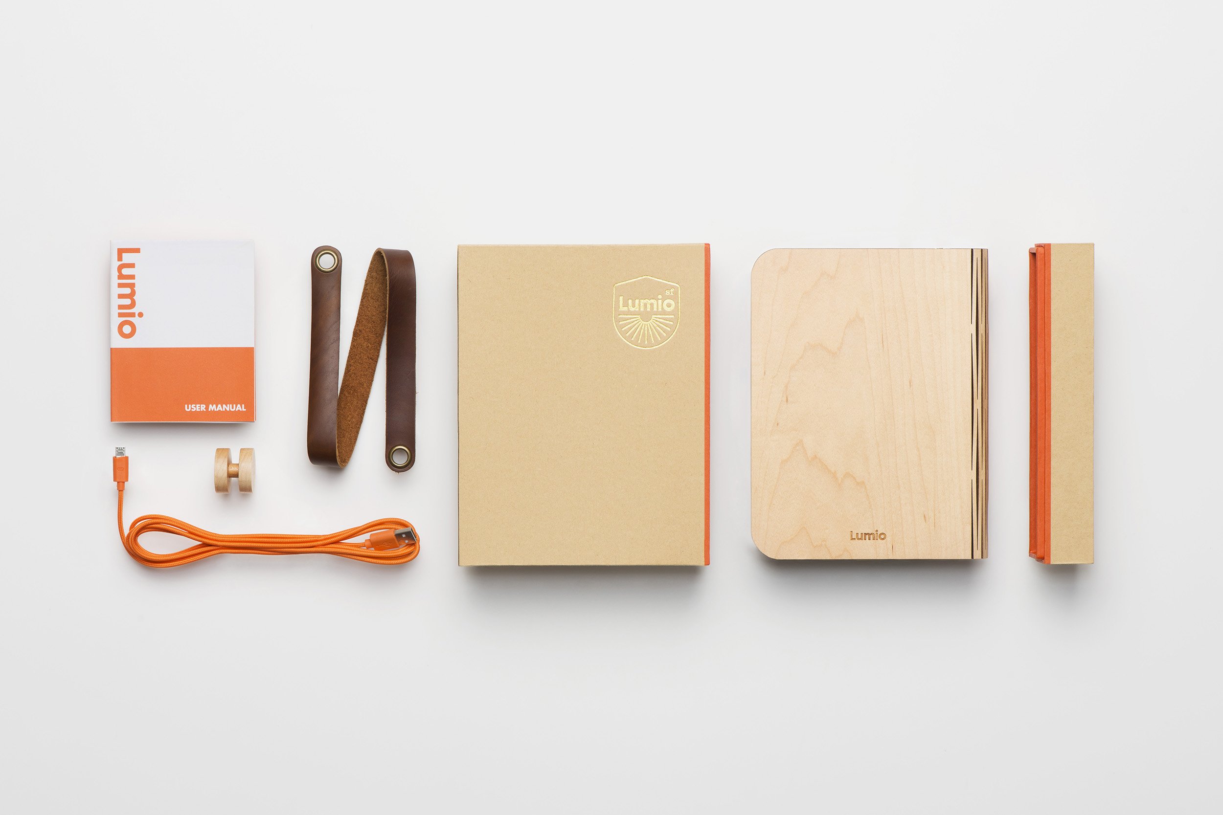 Lumio este o lampă dinamică, multifuncțională, deghizată sub forma unei cărți. Lumio se deschide la 360 de grade și vine însoțită de un încărcător micro-USB portocaliu, cabluri magnetice din lemn pentru montare și o frumoasă curea de piele pentru agățare.