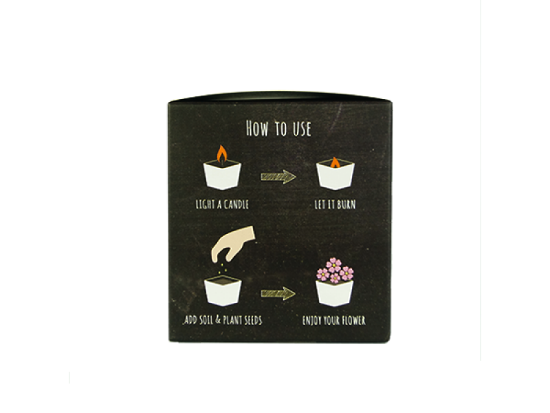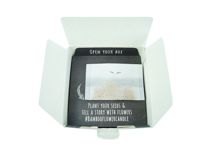 Suportul lumanarii este realizat din fibre organice de bambus. Lumanarea include seminte de bambus pe care le poti planta in ghiveci, si un capac din lemn.