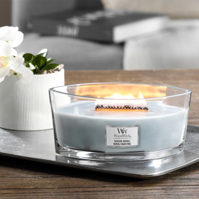 Lumânările WoodWick combină sunetul liniștitor al unui foc de lemne, cu note calde și relaxante, pentru o atmosferă memorabilă. Fitilul din lemn natural, prin tehnologia patentată PlusWick, emite în timp ce arde un sunet asemănător lemnelor din șemineu și eliberează în cameră parfumul minunat și îmbietor al aromelor WoodWick.