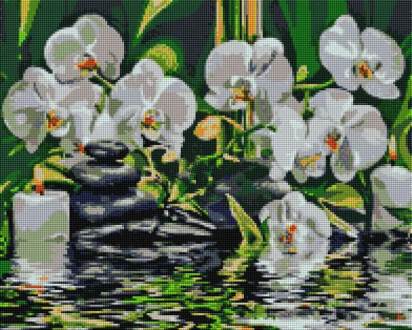 Mozaic cu diamante - Atmosfera de liniste cu orhidee, 50x40 cm