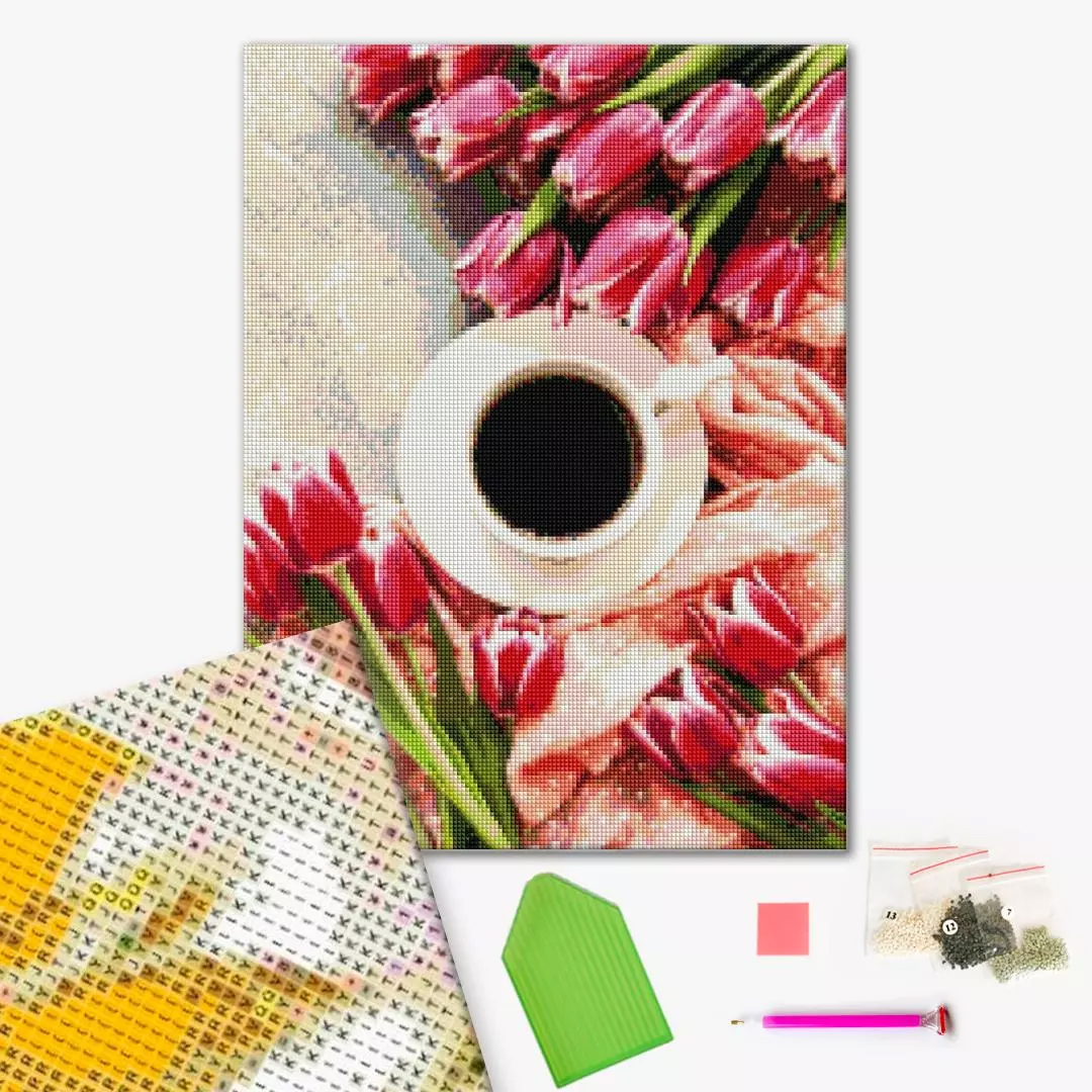 Mozaic cu diamante - Lalele si cafea, 40x50 cm