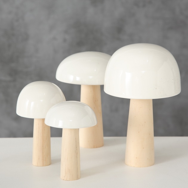 Ciupercuțe decorative din lemn și porțelan, ideale pentru înfrumusețarea locuinței.
