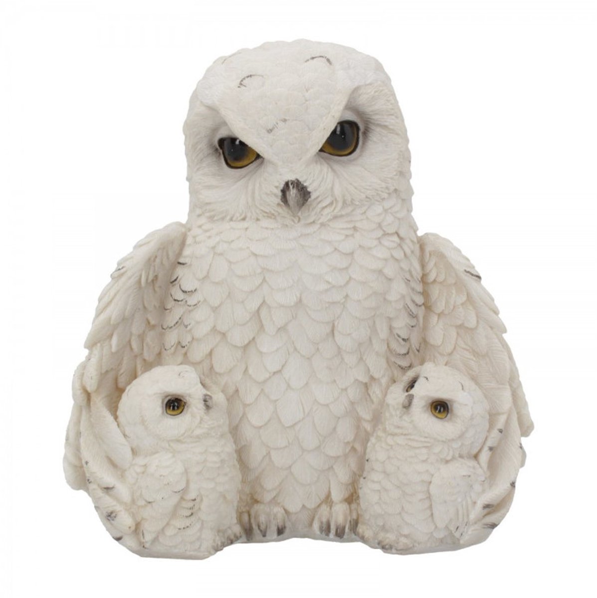 Această piesă este perfectă pentru oricine iubește natura. Această bufniță de zăpadă își înfășoară aripile în jurul puișorilor săi adorabili.
