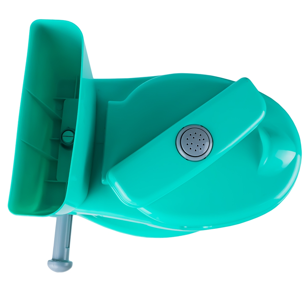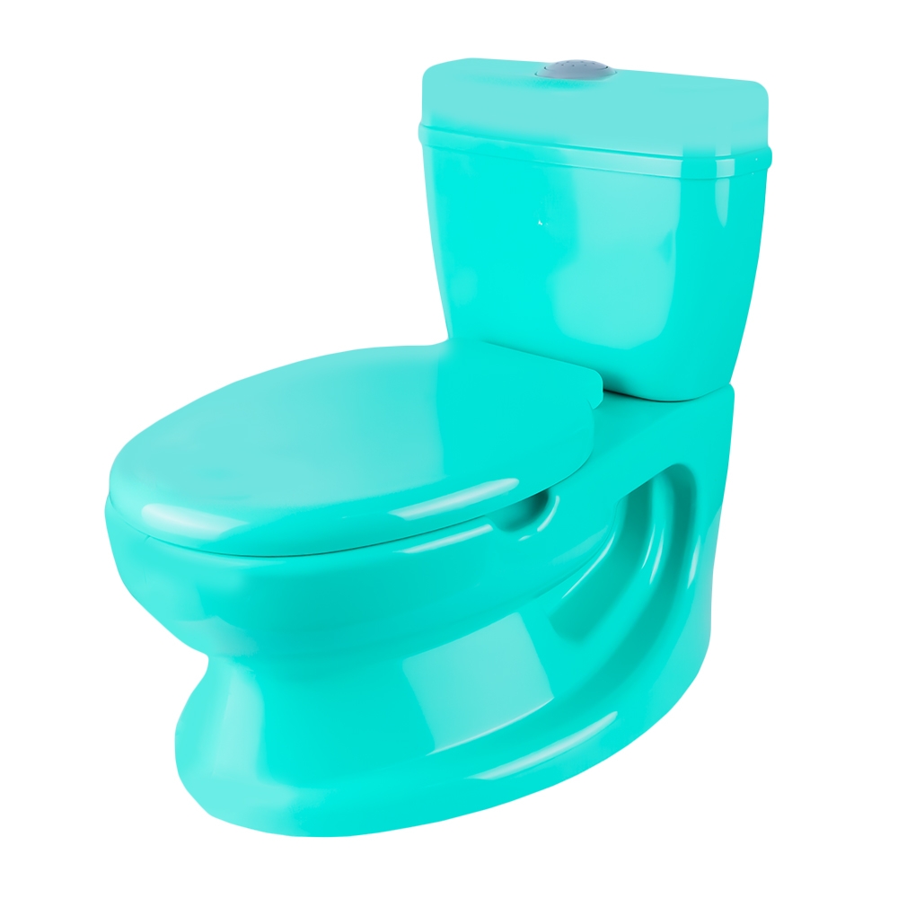 - Designul este atractiv si imita realitatea, avand elementele necesare unui vas de toaleta: buton care se apasa si emite sunete de tras apa, suport retractabil pentru hartie, capac ce poate fi ridicat si coborat.
