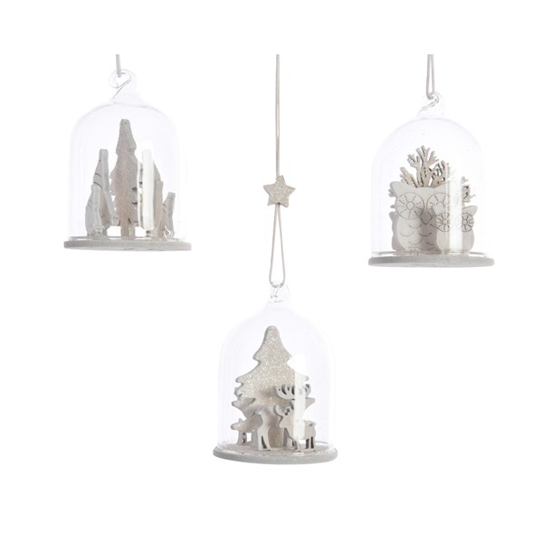 Ornament brad - Glass Bell with Wooden Figurine - White - mai multe modele