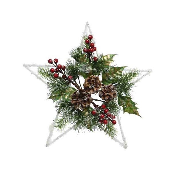 Decoratiune de Craciun - Pine Star with Hanger - White and Colours