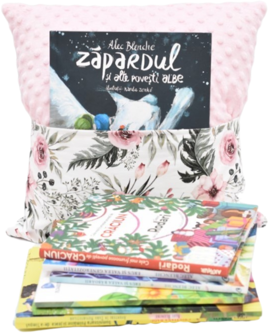 Am faurit-o cu mult drag, visand la un cadru magic in care seara, inainte de somn, cititi povesti despre printese sau alte personaje fermecate. Faureste si tu, draga mamica, cadrul ideal in care micuta ta se lasa purtata de povestile nemuritoare, alaturi de aceasta minunata pernuta. Imaginatia zboara libera, ca petalele trandafirilor parfumati.
