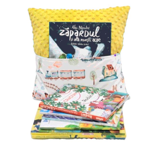 Pernuta cu buzunar pentru carti "Trenulete jucause" este faurita cu mult drag si grija pentru a incuraja cititul in familie, parinti si copilasi deopotriva. Ne dorim spatii de poveste, in care personajele prind viata si inveselesc casa.