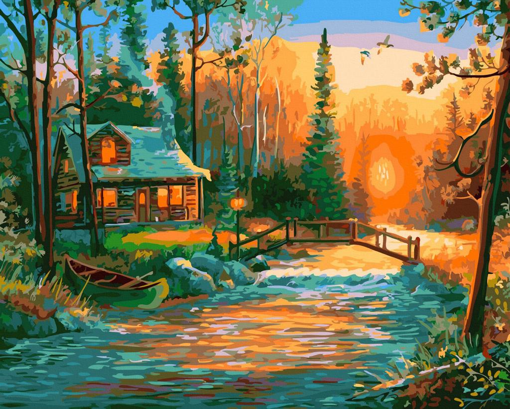 Pictură pe numere – Căsuță în pădure este un tablou de complexitate medie și poate fi pus după finalizare pe peretele locuinței tale.