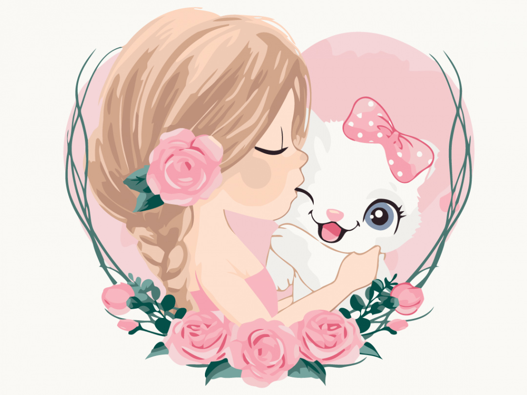 Pictura pe numere - Pisica iubitoare, 40x30cm