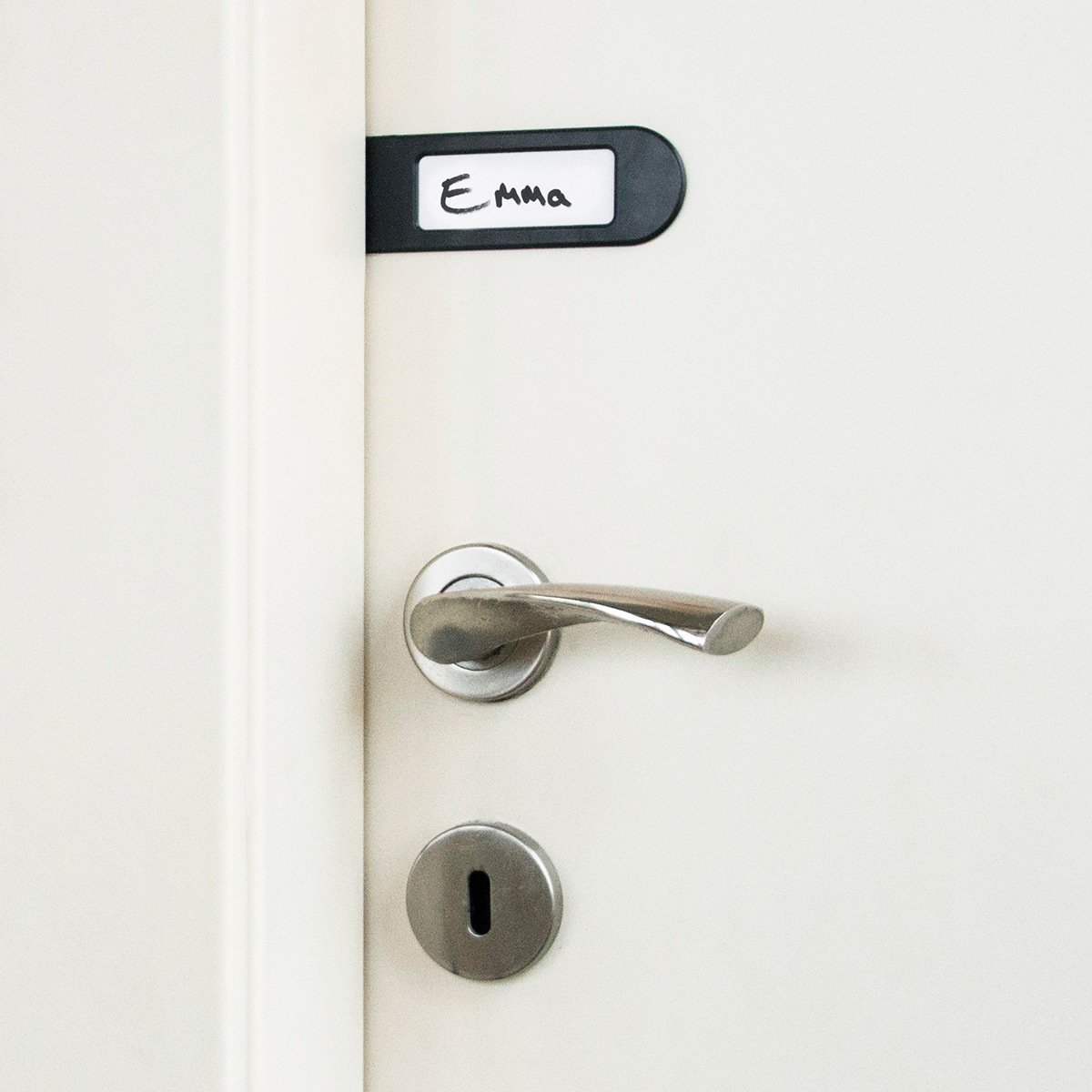 Tot ce trebuie sa faceti este sa lipiti placuta pe usa si sa va scrieti numele.