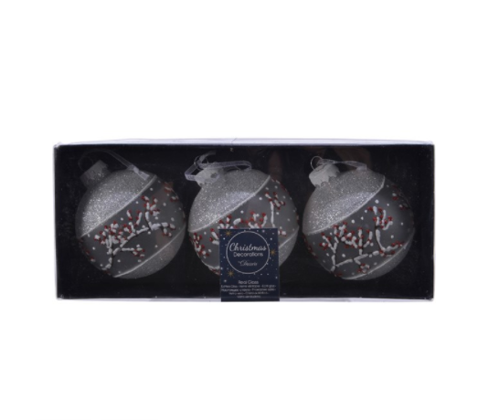 Set 3 globuri - Glass Branch - Berries - Winter White