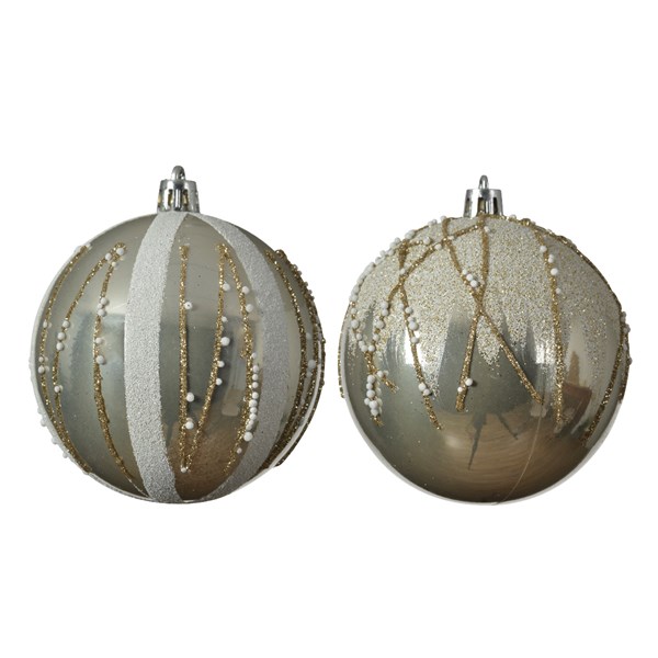 Set 4 globuri - Shatterproof Shiny Glitter and Mini Foam - Champagne