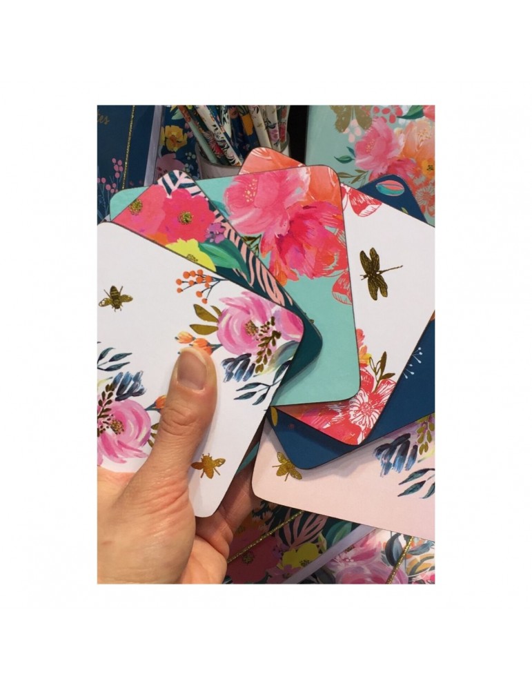 Acest set de 6 coastere pătrate ilustrate de Louise Tiler este realizat din placaj și plută. Sunt decorate cu flori viu colorate.