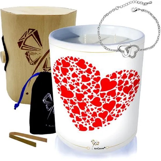 Lumânare parfumată din soia cu brățară cu inimioare decorată cu cristale Swarovski.