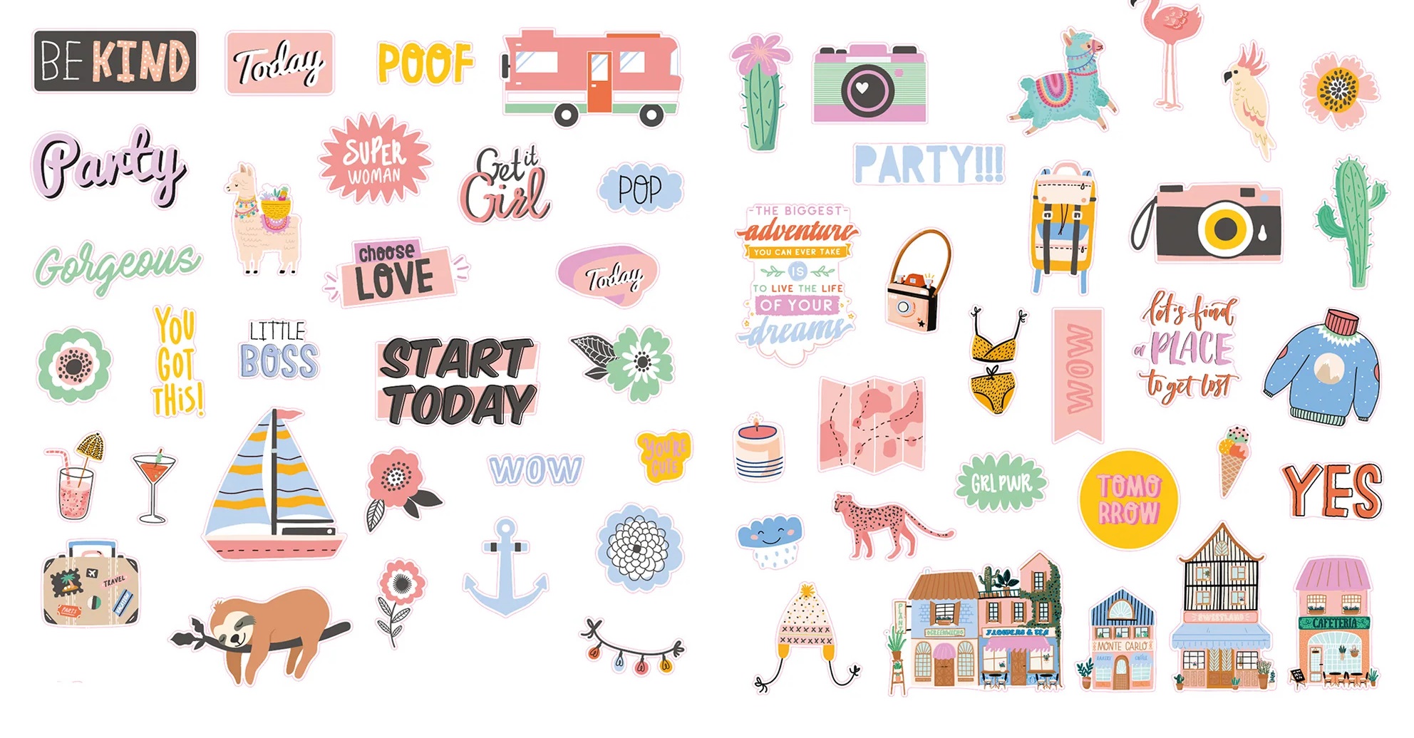 Dă o notă haioasă albumelor tale de fotografii cu cele 118 decorațiuni din hârtie din acest set.