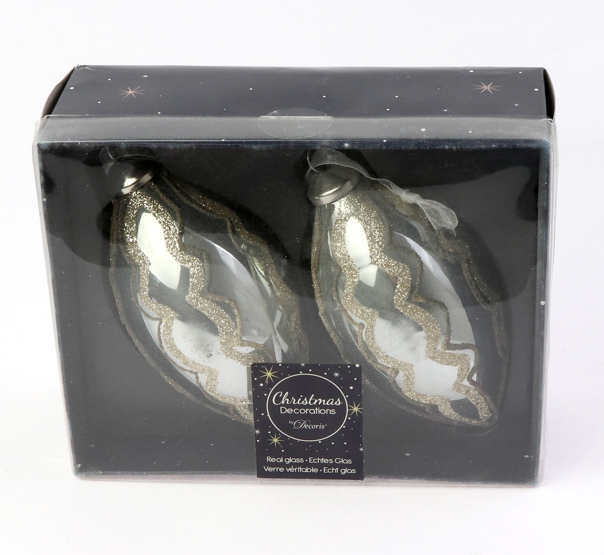 Set globuri Craciun - Decoris Olive With Glitter, 7x12cm