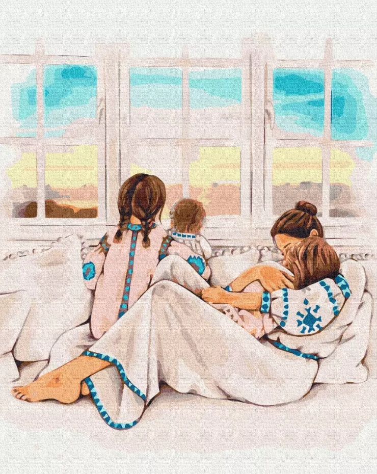 Pachetul contine: panza din bumbac intinsa pe sasiu din lemn, setul de culori acrilice numerotate, pensule de diferite marimi, agatatoare de perete.