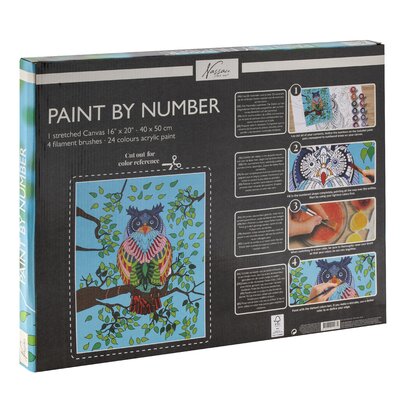Setul contine: panza carton preimprimata si numerotata; culori nuante gata preparate si 4 pensule.