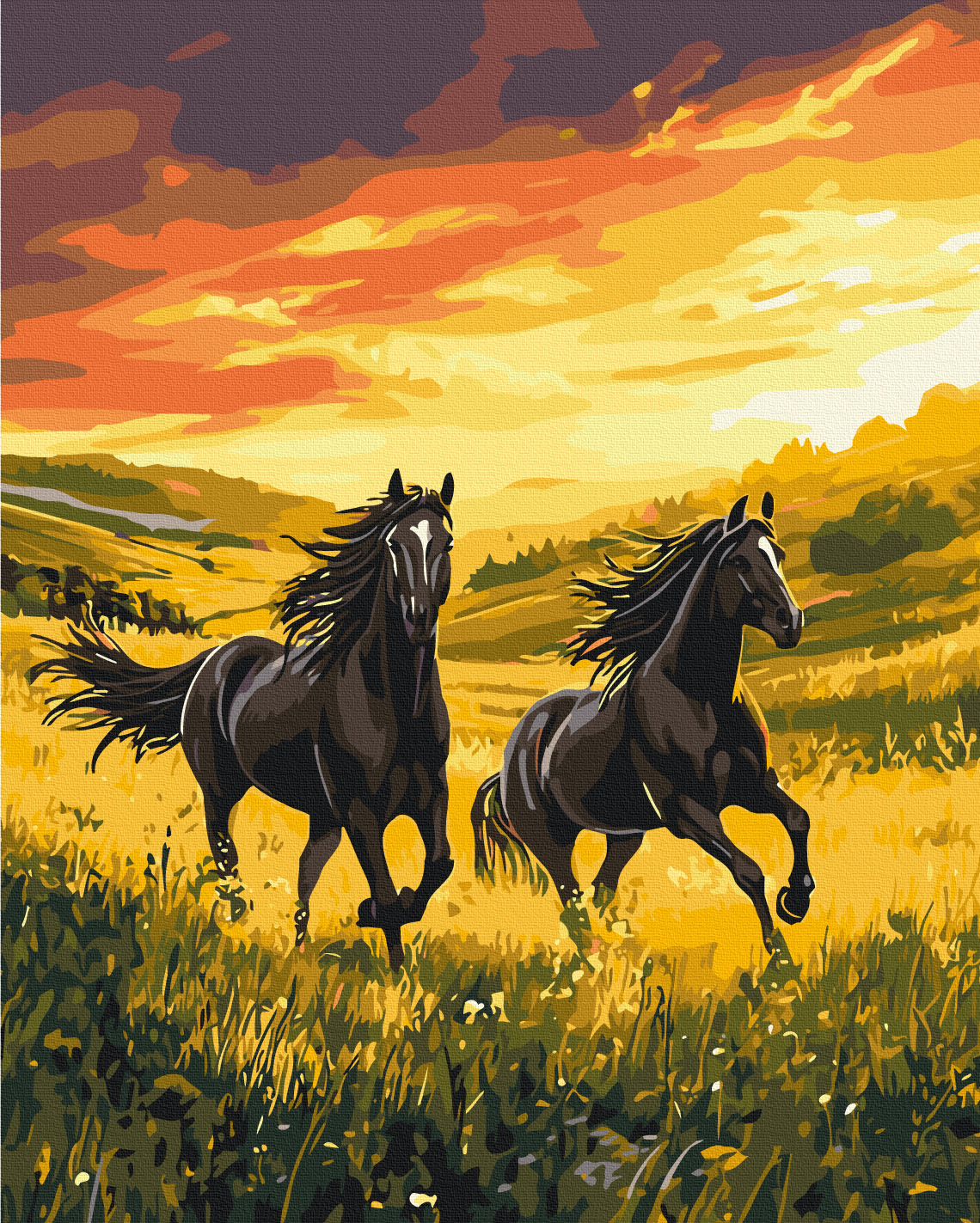 Set pictura pe numere - Cai in fuga de la brandul Brushme.