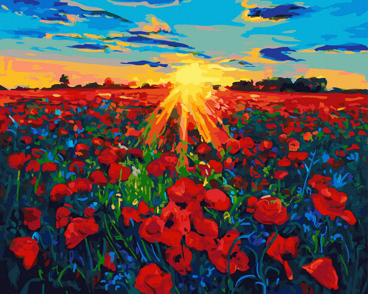 Pictură pe numere – Camp de maci este un tablou de complexitate medie și poate fi pus după finalizare pe peretele locuinței tale.