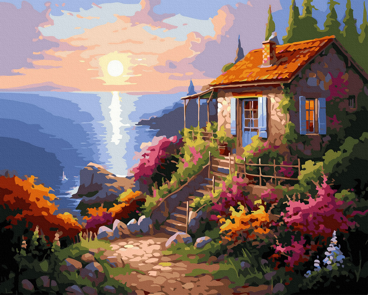 Pictură pe numere – Casa de pe deal este un tablou de complexitate medie și poate fi pus după finalizare pe peretele locuinței tale.