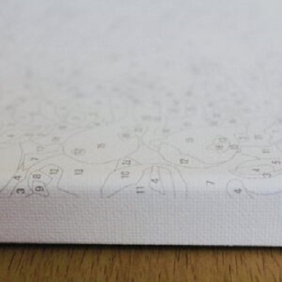 • pânză de bumbac fixată pe o ramă din lemn cu desen conturat în numere