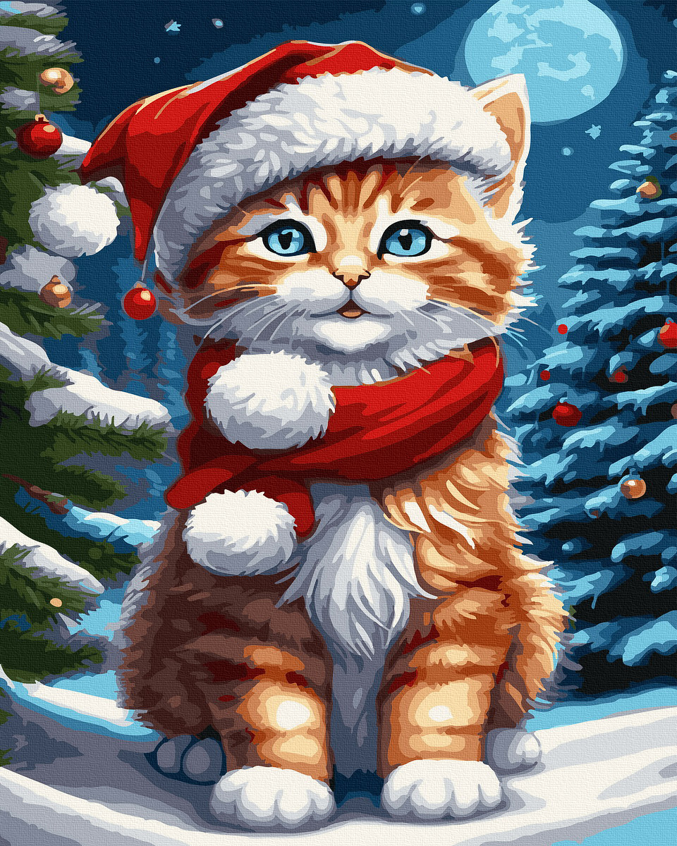 Pictură pe numere – Pisica de Craciun este un tablou de complexitate medie și poate fi pus după finalizare pe peretele locuinței tale.