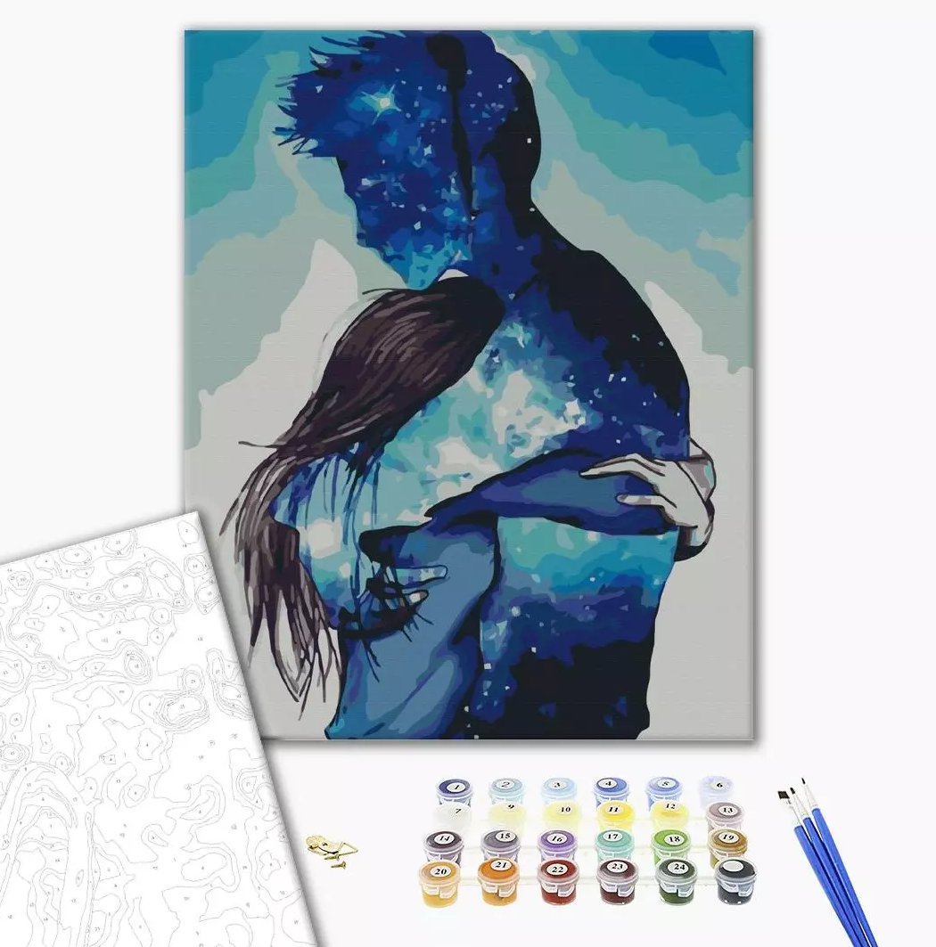 Pachetul contine: panza din bumbac intinsa pe sasiu din lemn, setul de culori acrilice numerotate, pensule de diferite marimi, agatatoare de perete.
