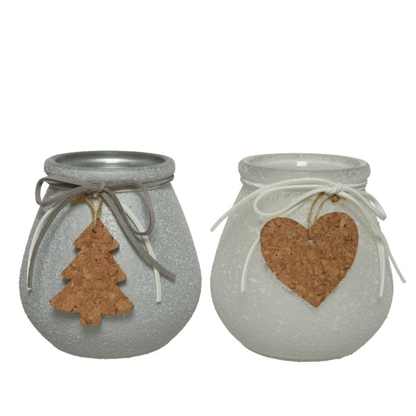 Suport pentru lumanare - Tealightholder Glass Frosted Matching Ribbon, Cork Heart, Cork Tree - mai multe modele