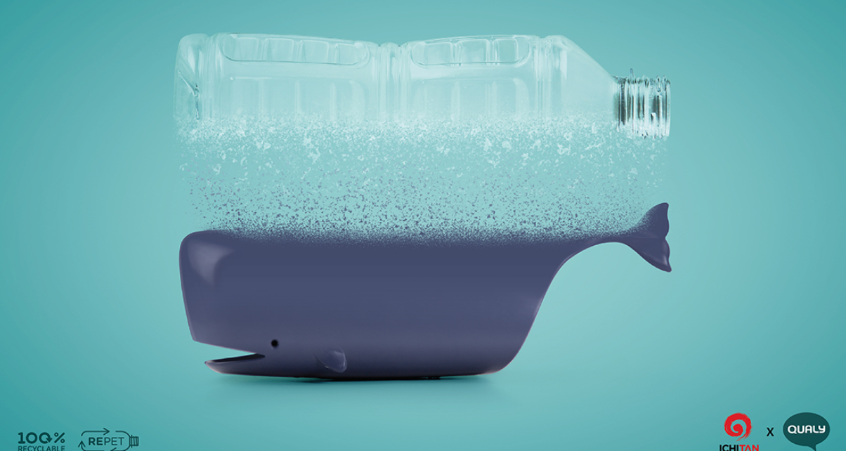 Suport punga plastic - Balena - produs din 28 de sticle de plastic colectate din ocean