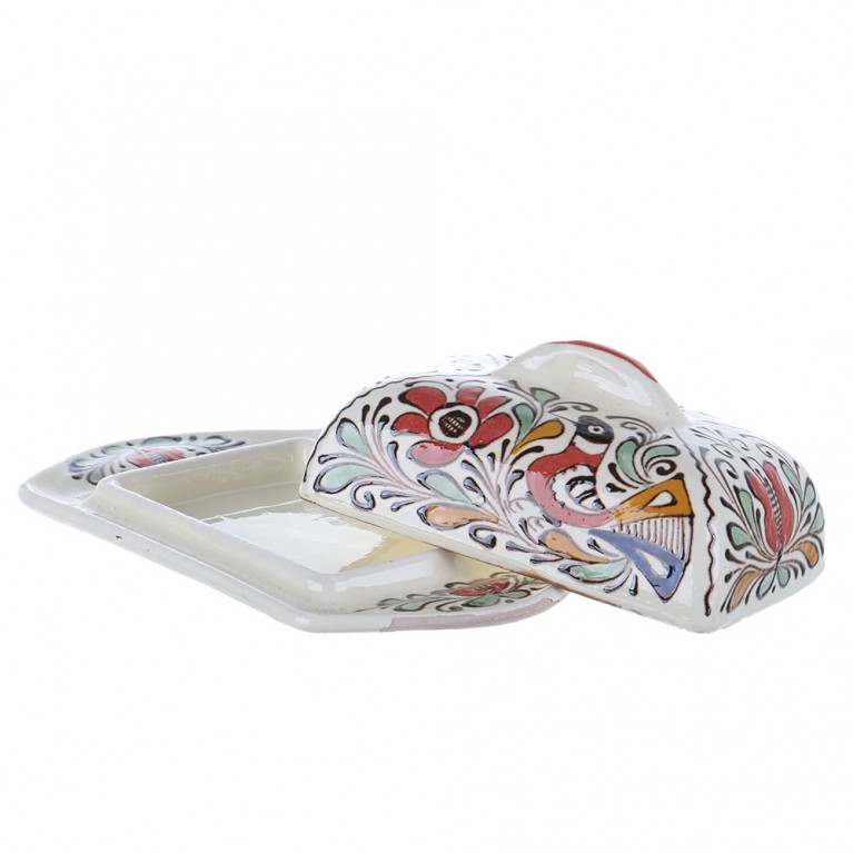Untiera din ceramică colorată de Corund reprezintă o modalitate elegantă și de efect de a păstra și de a servi untul în cadrul micului dejun, ducându-ne cu gândul la povești cu castele, prinți și prințese.