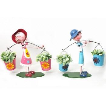 Vas din metal, pentru 2 plante. Disponibil in 2 modele, fata sau baiat.