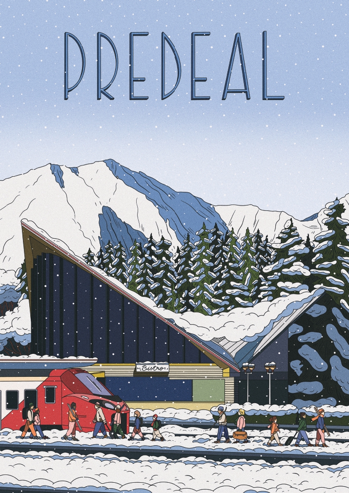 Desenul redă Gara de călători din Predeal și face parte din seria semnată de artista Ana Popescu, dedicată câtorva dintre cele mai fermecătoare locuri din România ce merită să fie descoperite și redescoperite în egală măsură de turiști și localnici.