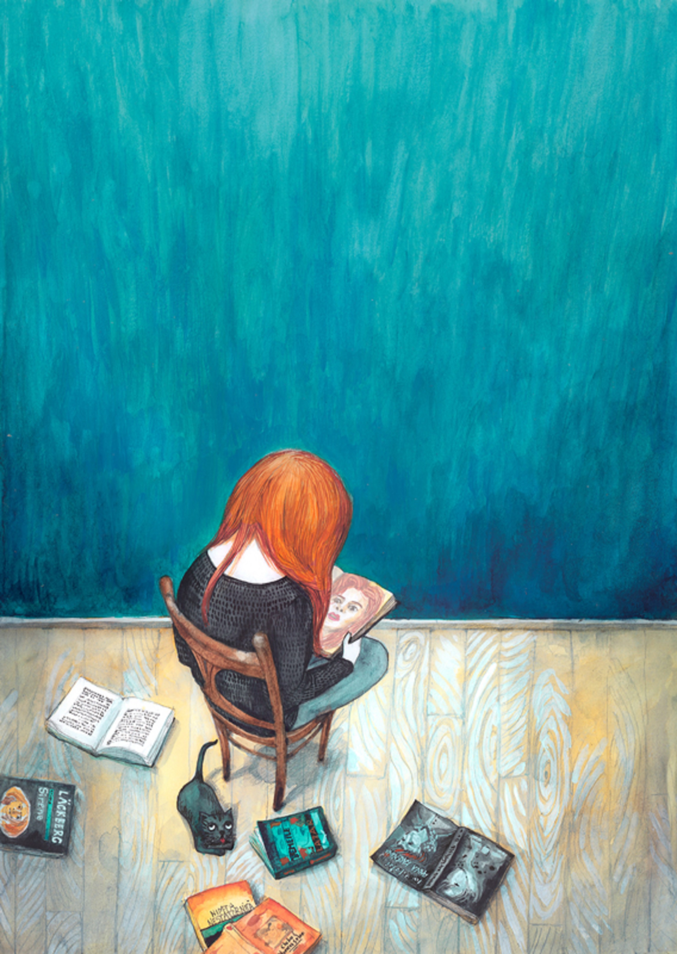 Această carte poștală - Reflection este ilustrată de Georgiana Chitac și surprinde dragostea ei nemăsurată pentru cărți.
