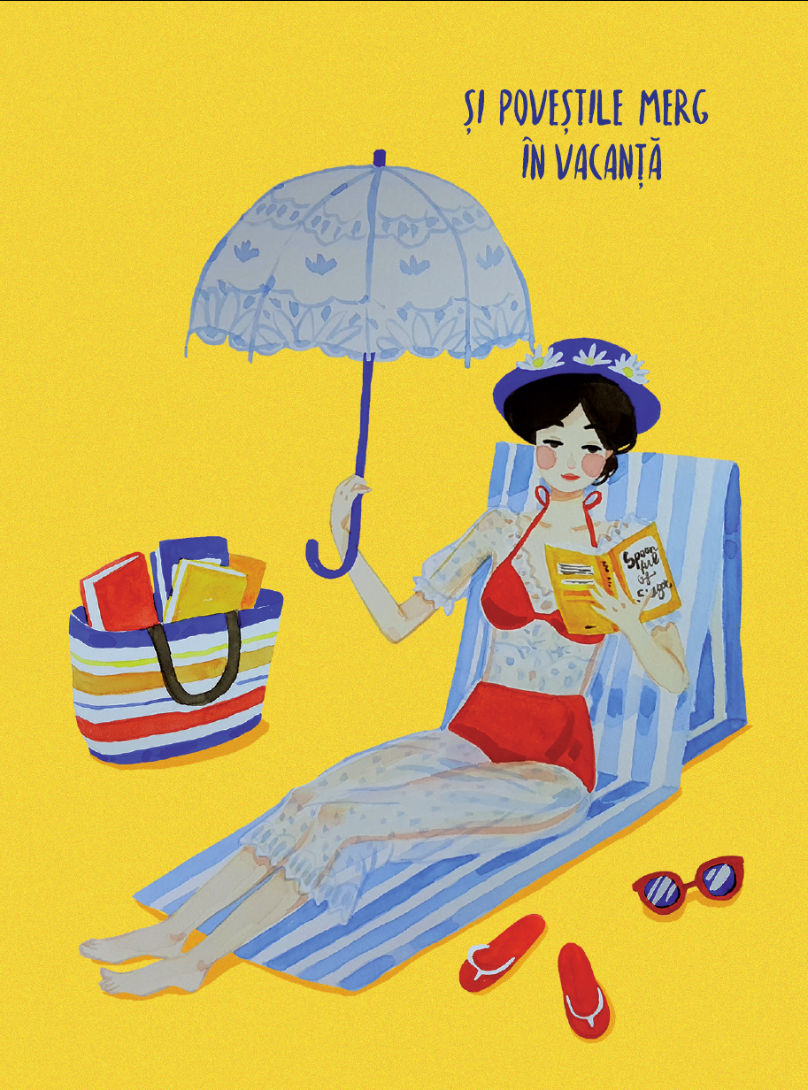 Iată o dovadă că poveștile merg în vacanță, sub formă de carte poștală, desenată de Andreea Mitica Illustrations, gândită de Whatif Collective.