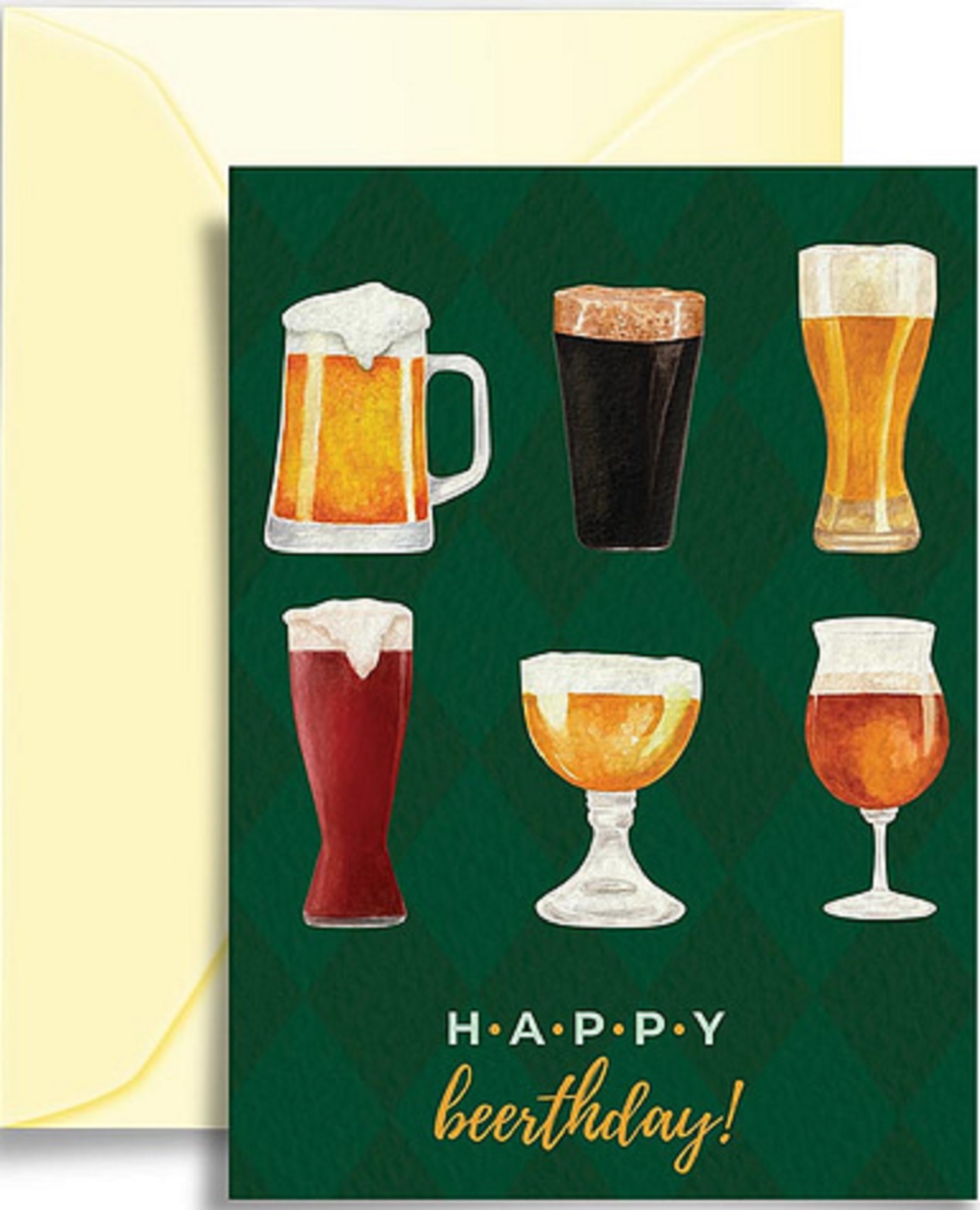 „Happy Beerthday!” – Felicitare cu bere, pictata manual, perfecta pentru a transmite un mesaj de „La multi ani” acelor prieteni cu simtul umorului.