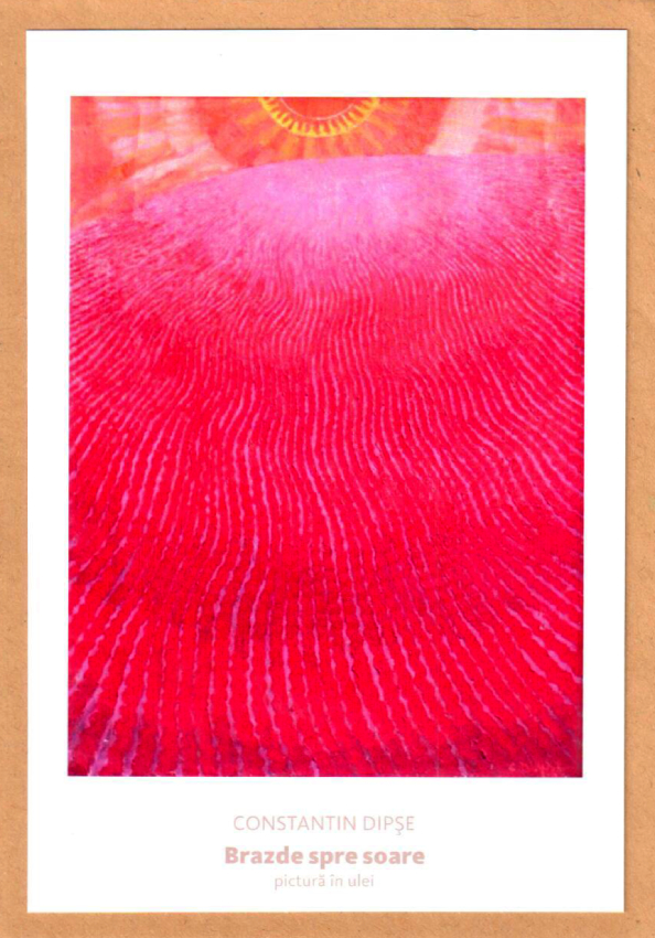 Ilustrată cu plic natur, reproducere pictură în ulei "Brazde spre soare" realizată de pictorul Constantin Dipșe