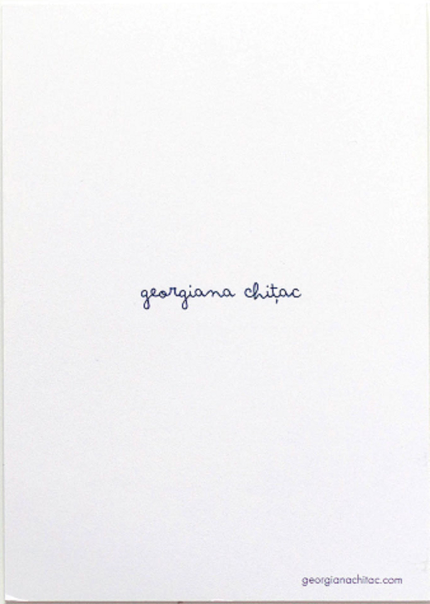 Această felicitare cu plic este ilustrată de Georgiana Chițac. Dimensiunile felicitării sunt de 14.8 X 21 cm.