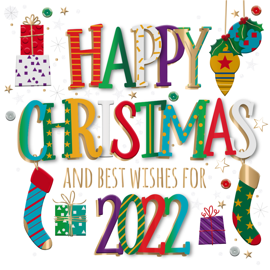 Felicitare - Happy Christmas 2022; conține mesajul: ”Happy Christmas and Best Wishes for 2022”.
