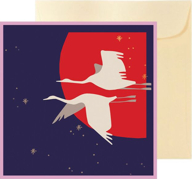 Ilustrația te duce într-un zbor către destinații exotice. Unde merg cocorii? În Japonia, unde simbolizează fericirea? În Africa, unde sunt așteptați ca mesageri divini? Sau în Egipt, unde sunt văzuți ca un semn de prosperitate?