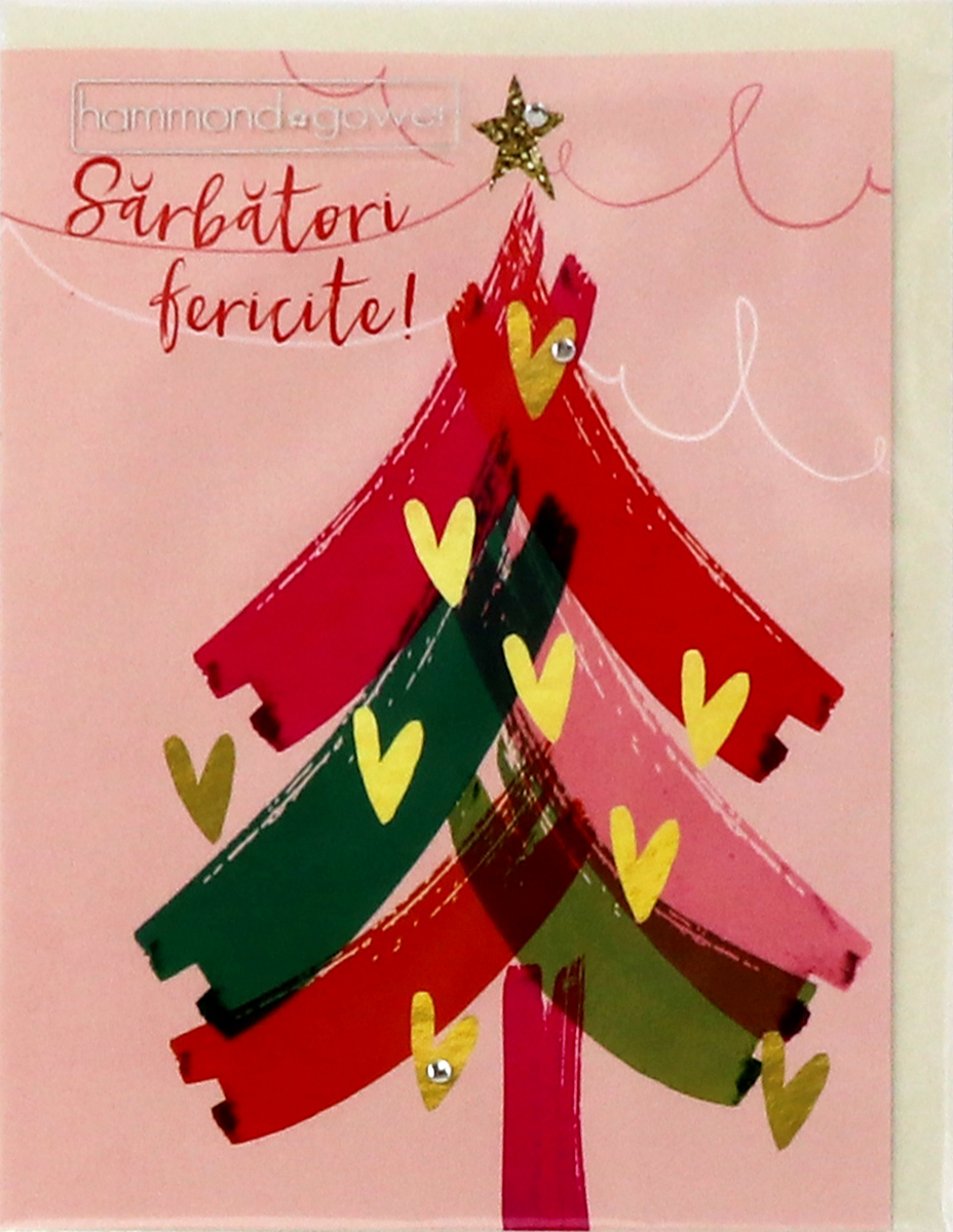 Felicitare - Sarbatori fericite! Brad cu inimi